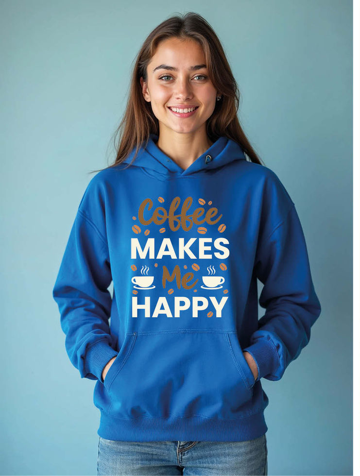 coffee makes me happy Woman's Printed Graphic Stylish Hoodies