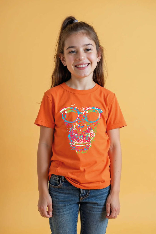 Colorful Abstract Monkey with Glasses Kids' Graphic Tee Premium Trendy Printed