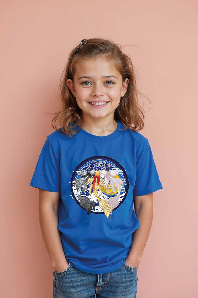 Colorful Koi Fish Printed T-Shirt for Kids – Japanese Art Inspired Lucky Fish