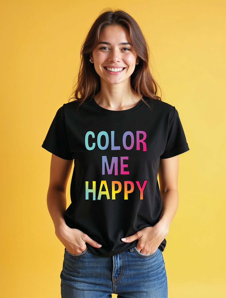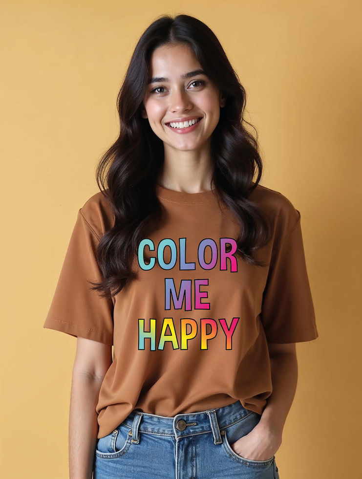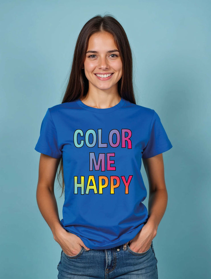 Colour me happy Cool Women’s Typography T-Shirt – Shop Now