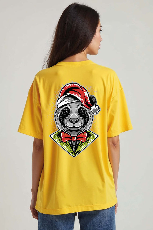 Cool Christmas Panda with Santa Hat Unisex Oversized Drop Shoulder T-Shirt