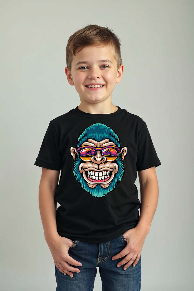Cool Funky Monkey Face Graphic T-Shirt for Kids – Trendy Cartoon Animal Print