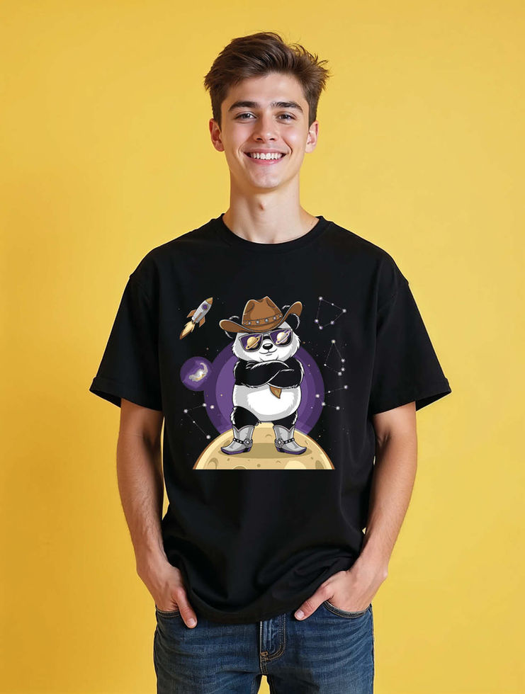 Cosmic Cowboy Panda Aesthetic Unisex Drop Shoulder Oversized T-Shirt