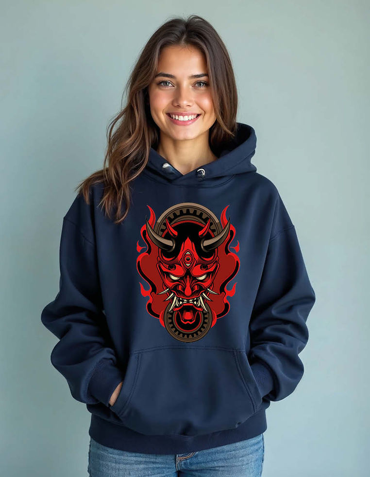 Crimson Hannya Flaming Red Oni Mask Stylish Unisex Printed Graphic Hoodies