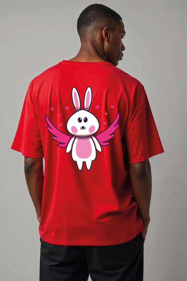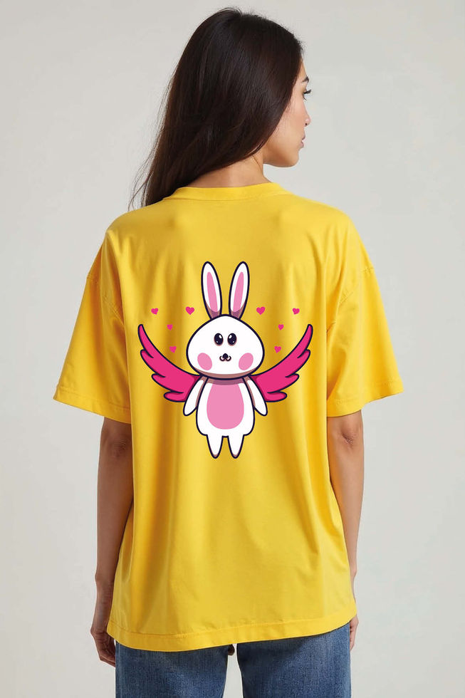 Cute Angel Bunny with Wings Aesthetic Unisex Oversized Drop Shoulder T-Shirt