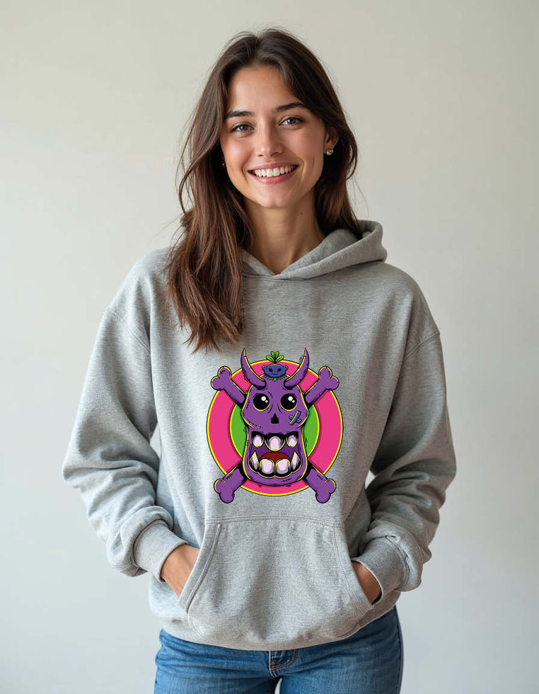 Modern Style: Graphic print design with hooded neck and pullover type.
