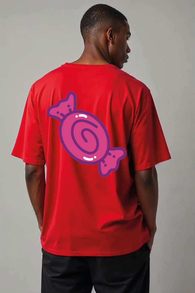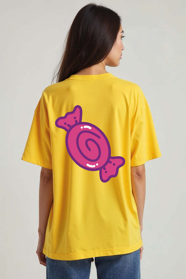 Cute Cartoon Swirl Wrapped Candy Unisex Oversized Drop Shoulder T-Shirt