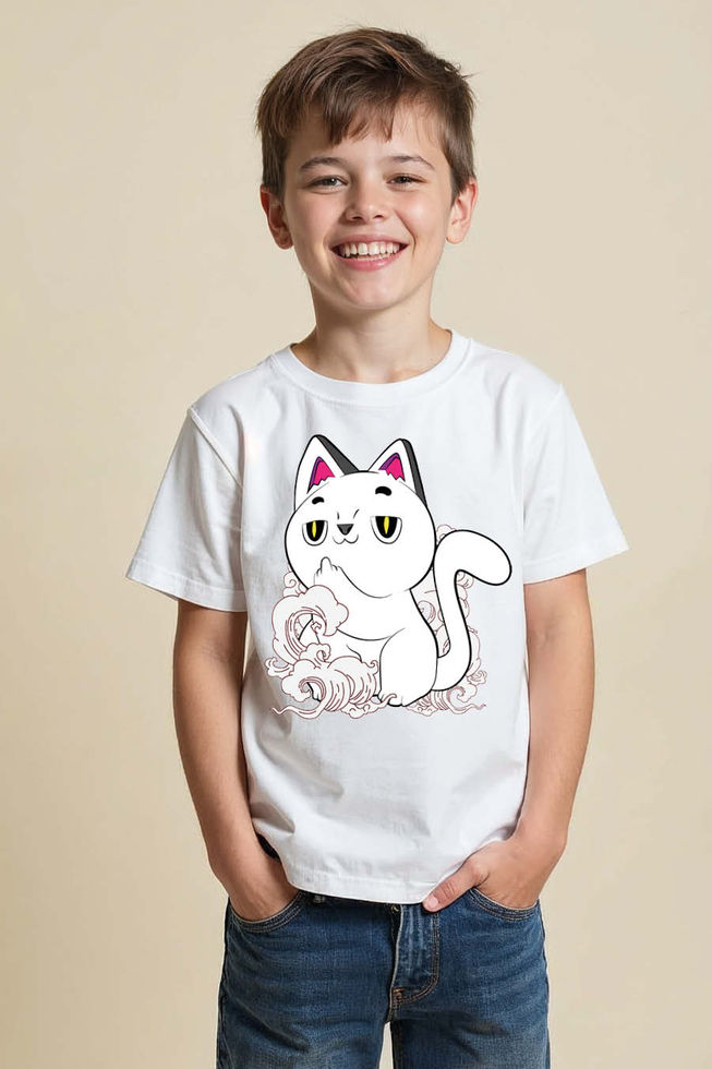 Cute Cat Printed T-Shirt for Girls – Adorable Kitty Graphic Tee Modern Stylish