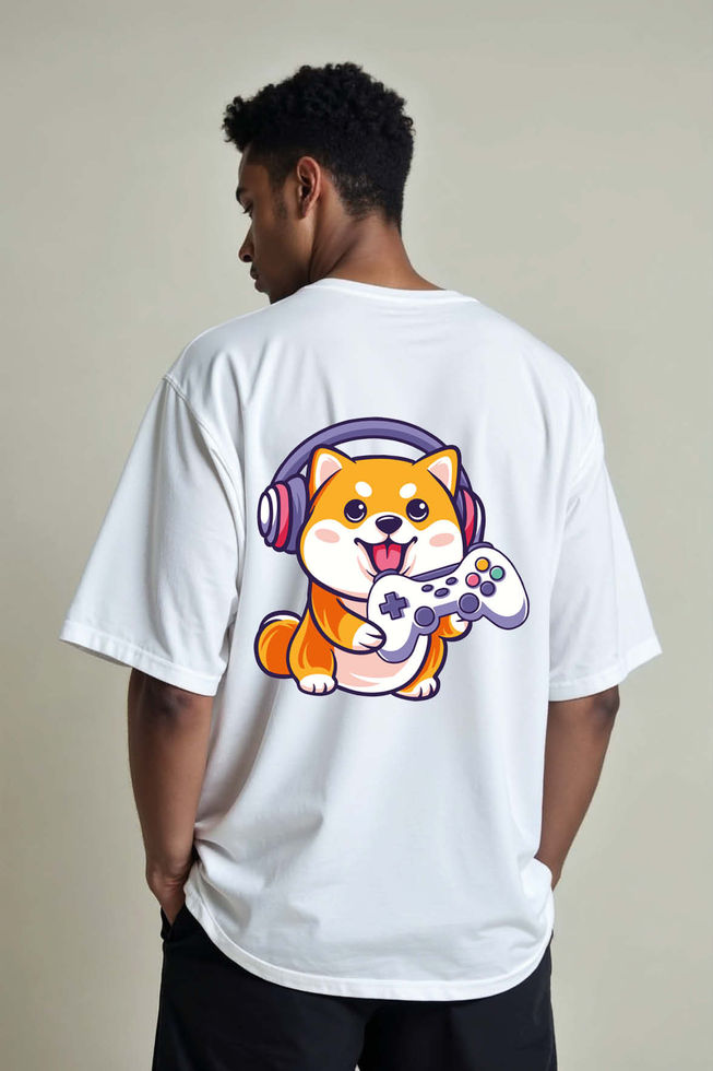 Cute Gamer Shiba Inu Dog Classic Unisex Oversized Drop Shoulder Tees