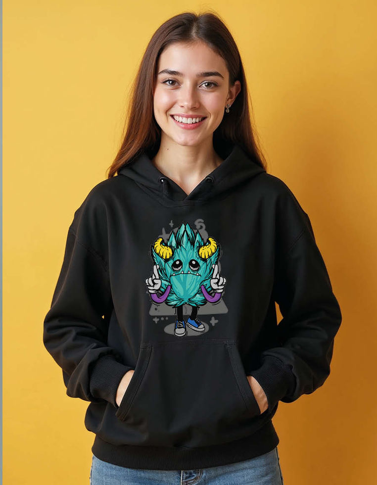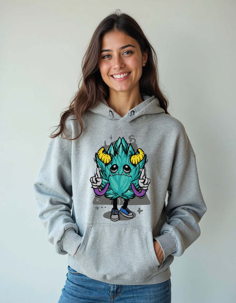 Cute Horned Monster Peace Sign Streetwear Unisex Printed Graphic Hoodies