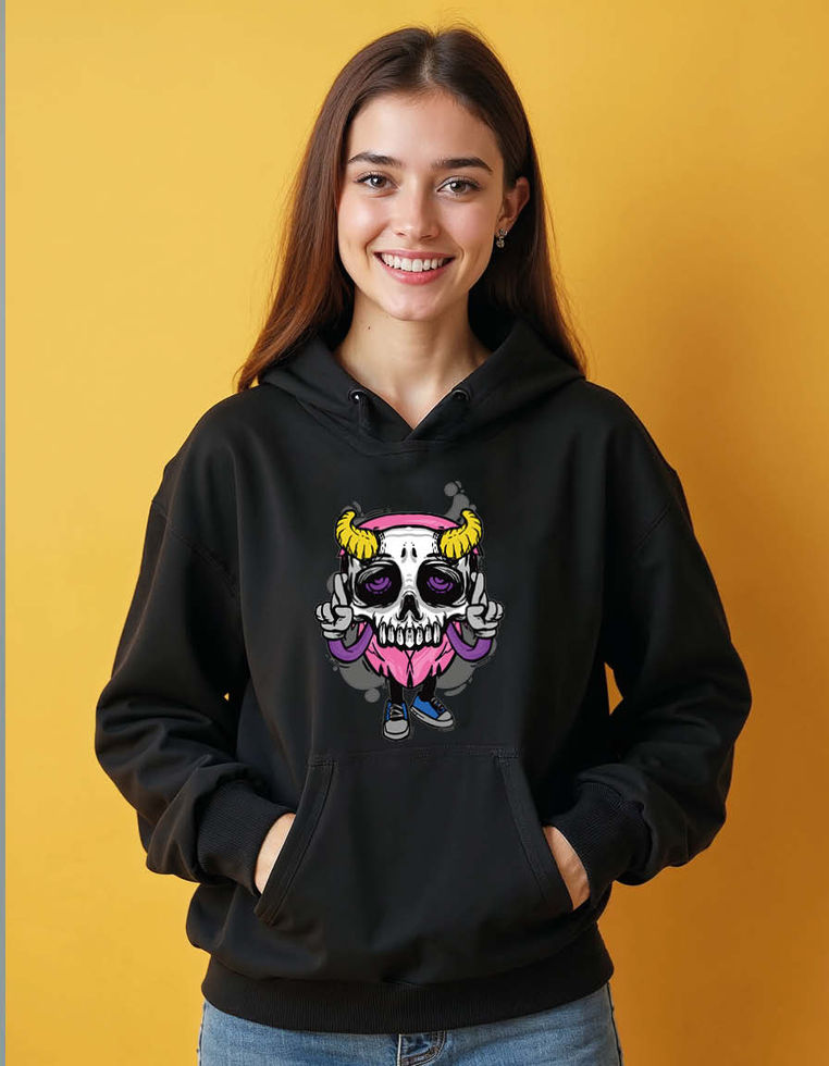 Cute Horned Zombie Cartoon Street Art Unisex Printed Graphic Hoodie