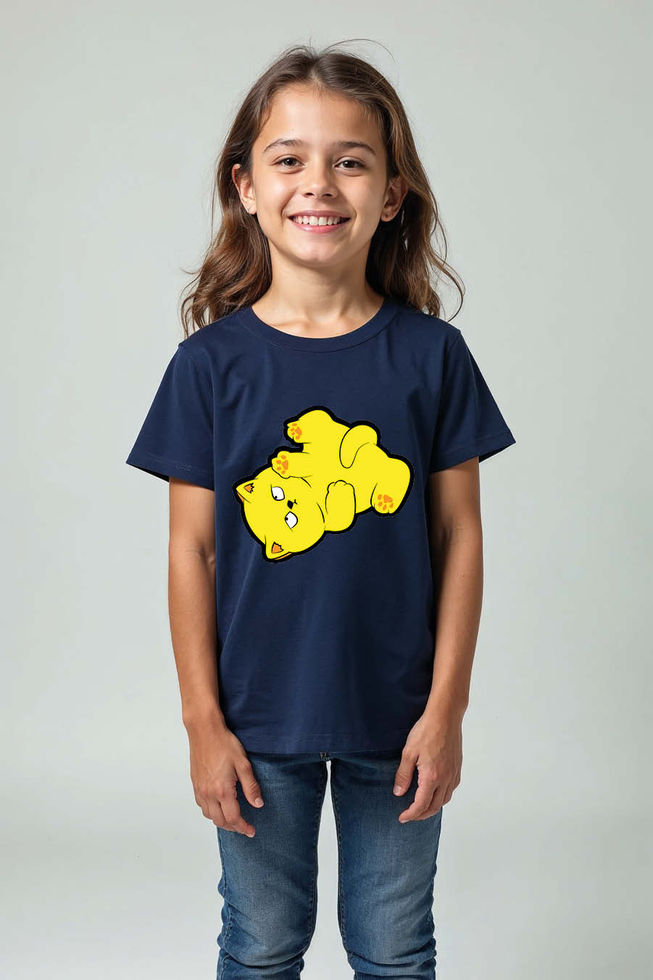 Cute Lazy Yellow Cat Printed T-Shirt for Kids – Funny Cartoon Kitty Graphic Tee