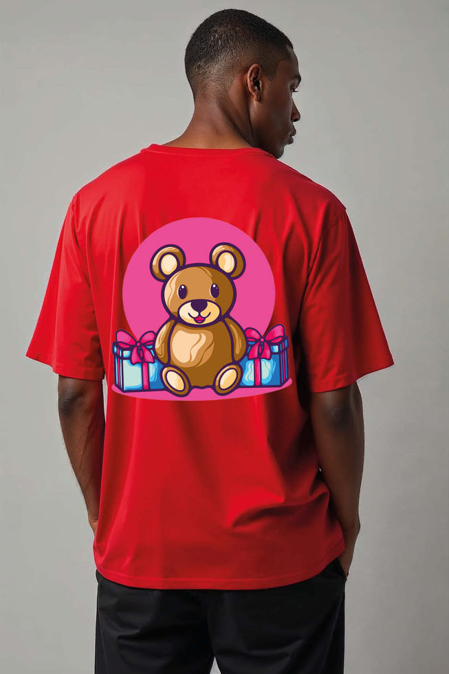 Cute Teddy Bear with Gift Boxes Vintage Unisex Drop Shoulder Oversized T-Shirt