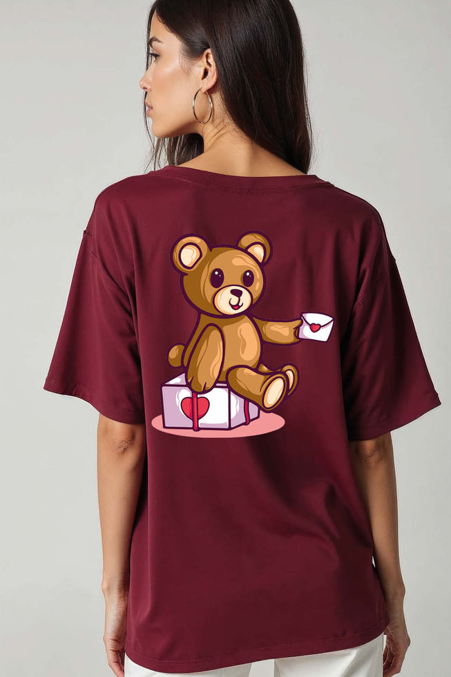 Cute Teddy Bear with Love Letter Cool Unisex Oversized Drop Shoulder Tees