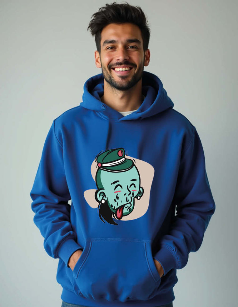 Cute Zombie Boy Cartoon Face Unisex Printed Graphic Hoodies For Men & Women