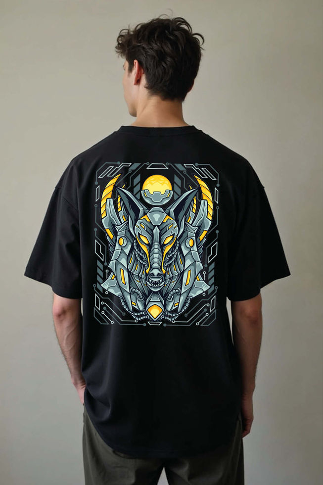 Cyber Wolf Mecha Cool Graphic Drop Shoulder Oversized T-Shirt for Men & Women