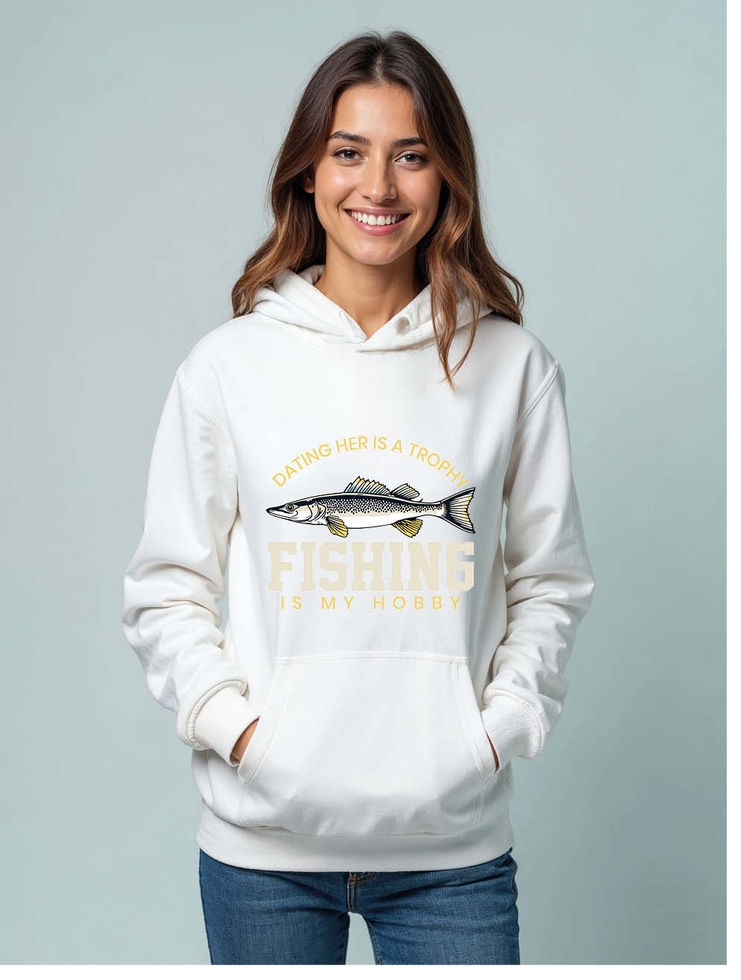 dating her is a trophy fishing is my hobby Woman Printed Graphic Stylish Hoodies