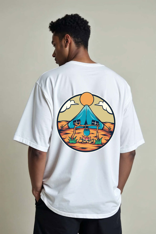 Desert Camping Tent and Sun Aesthetic Unisex Drop Shoulder Oversized T-Shirt
