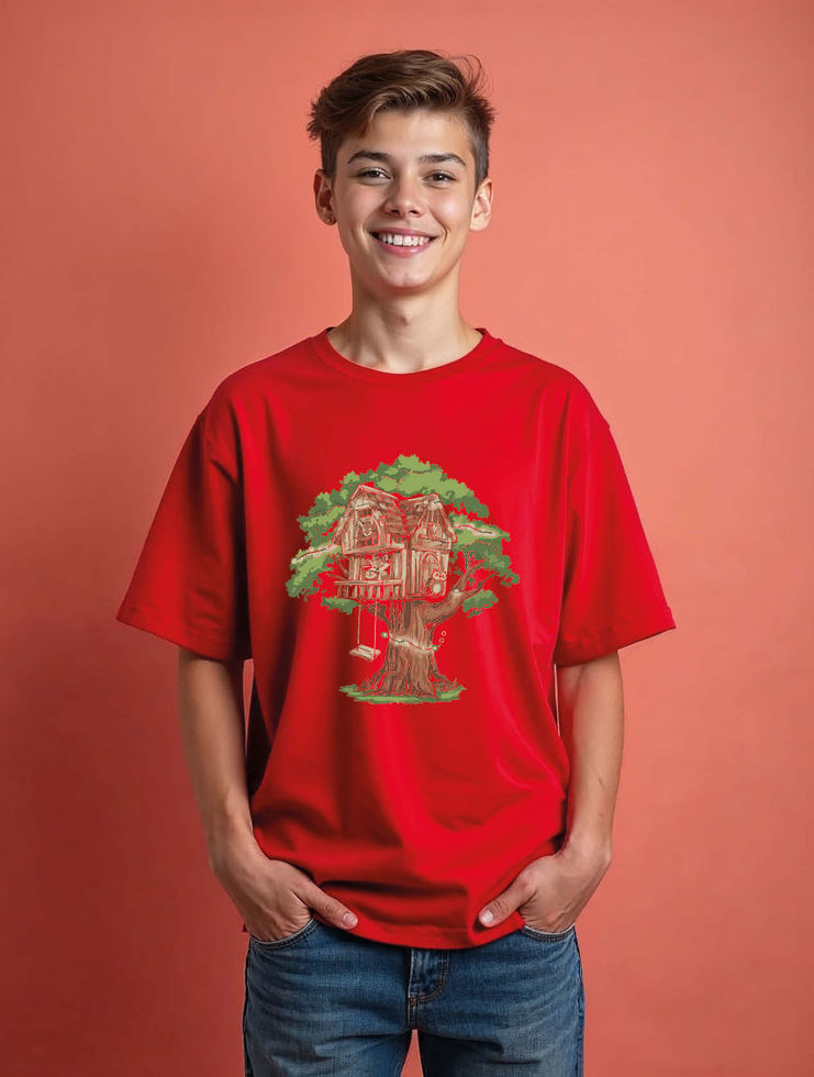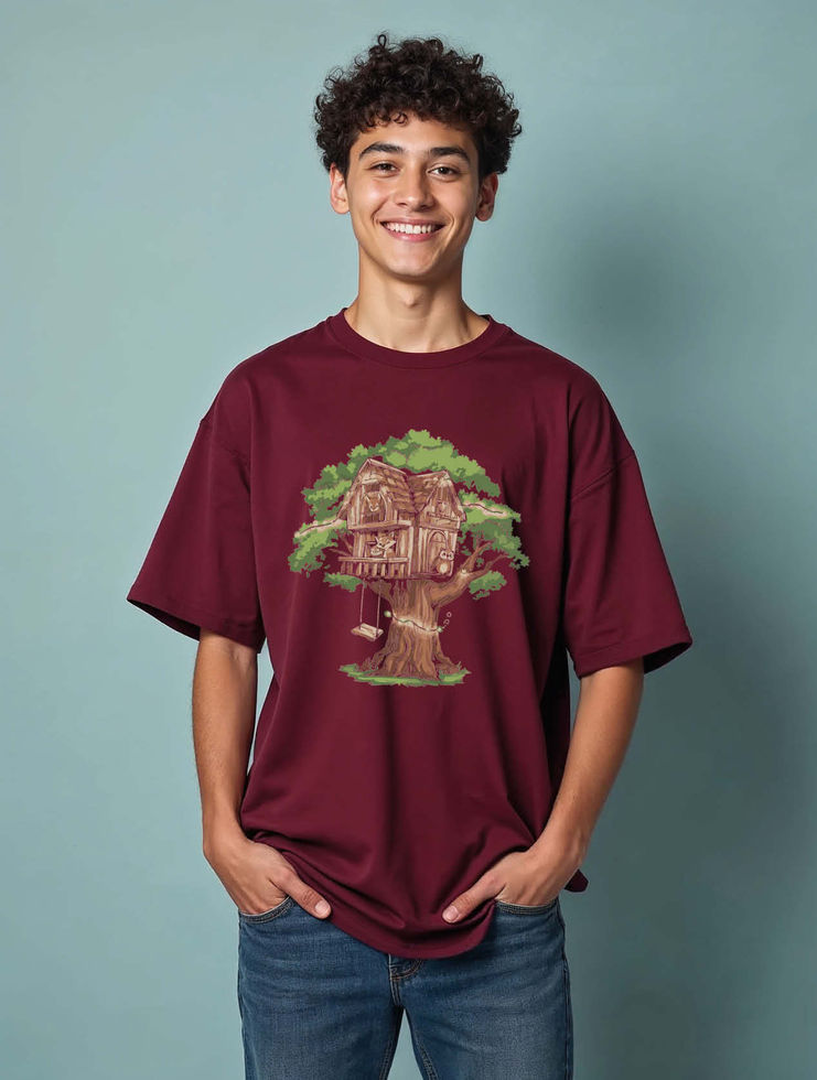 Detailed Treehouse Aesthetic Unisex Drop Shoulder Oversized T-Shirt