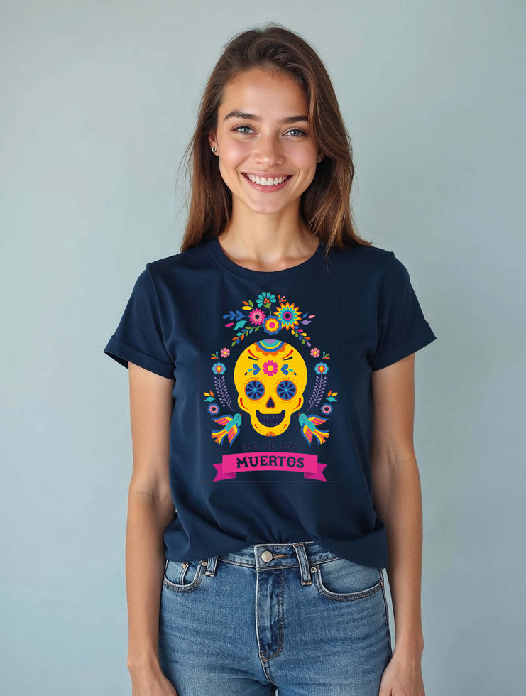 dia de los muertos Trendy Women’s Typography T-Shirt – Premium Quality
