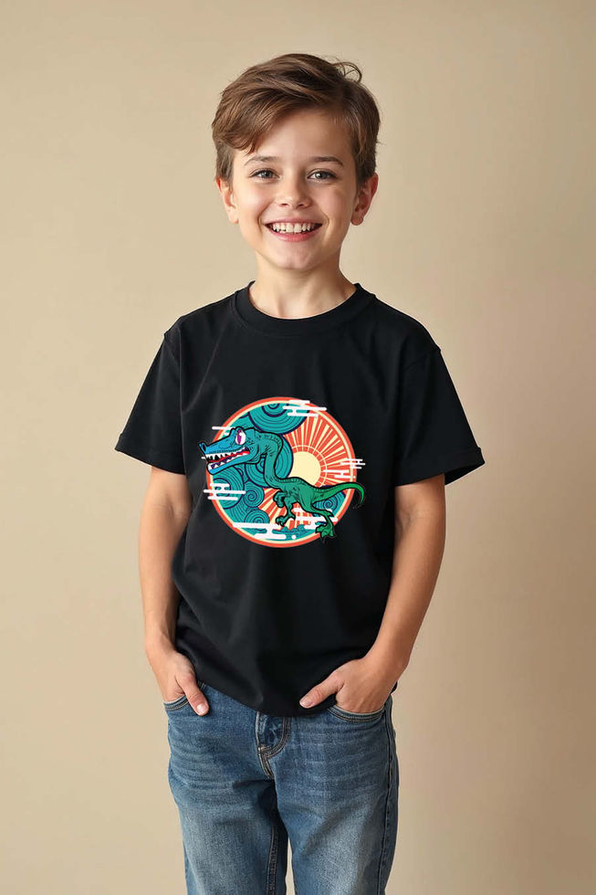 Dinosaur Printed T-Shirt for Kids – Fun Rising Sun Jurassic Adventure Tee