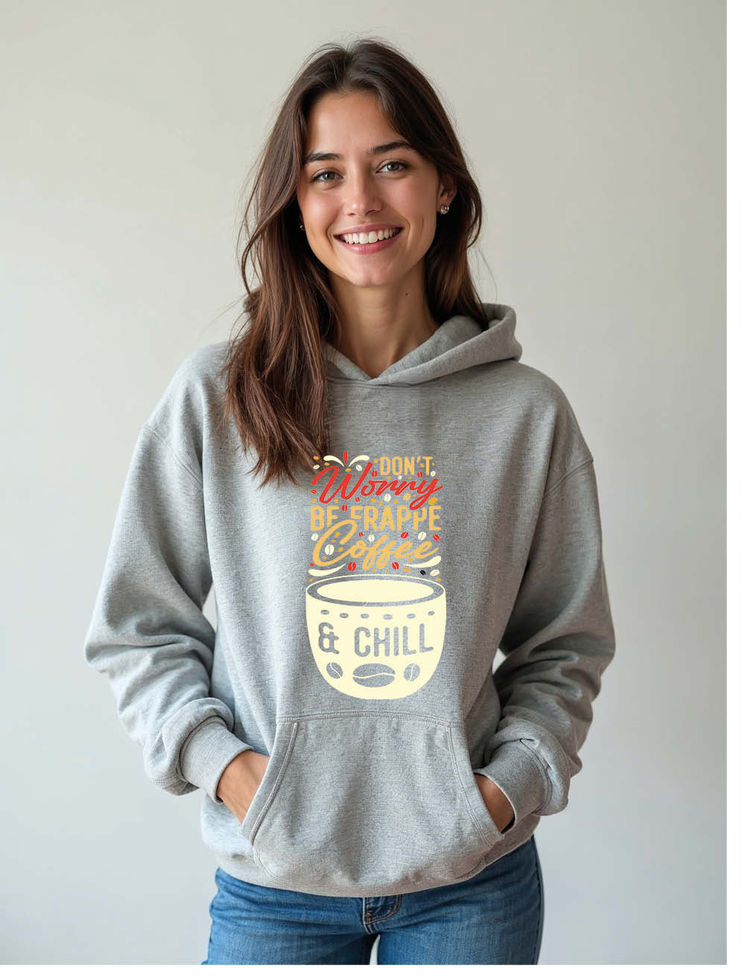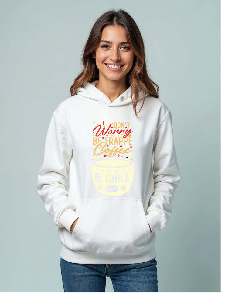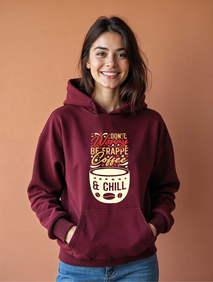don 't worry be frappe coffee& chill Woman Printed Graphic Hoodies