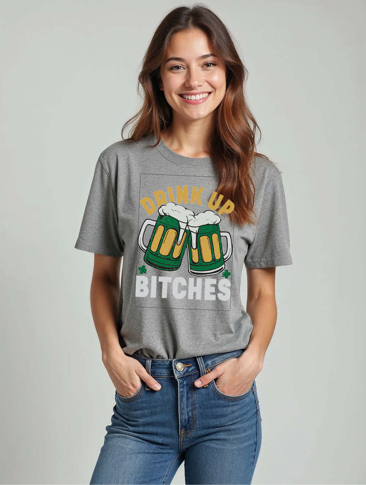 Drink up bitches Modern Women’s Typography T-Shirt – Premium Quality