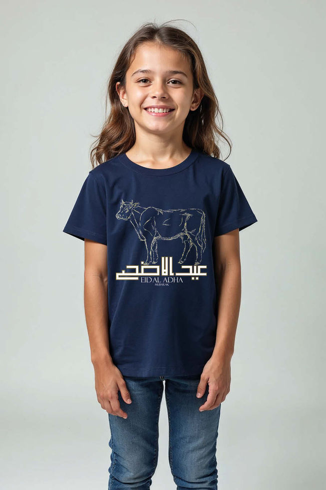 Eid Al-Adha Cow Line Art Comfortable Stylish Kids Graphic T-Shirt – Print Print