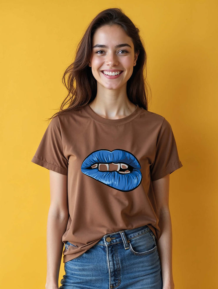Electric Blue Lips Biting Cool Women’s Printed Graphic Streetwear T-Shirt – Best