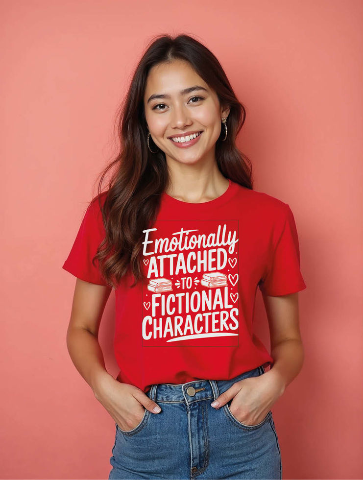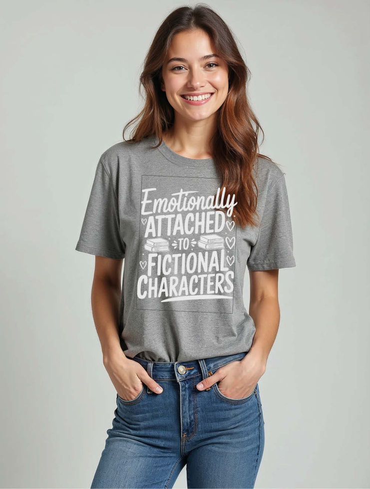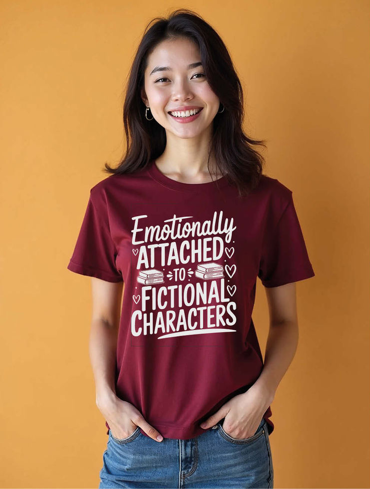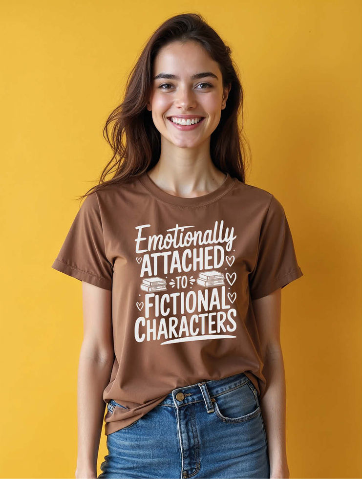emotionally attached to fictional characters Stylish Women’s Typography T-Shirt