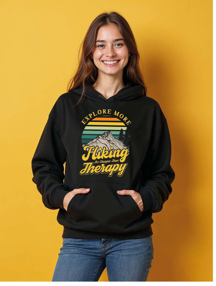 explore more hiking it's cheaper than therapy Classic Women’s Typography Hoodies