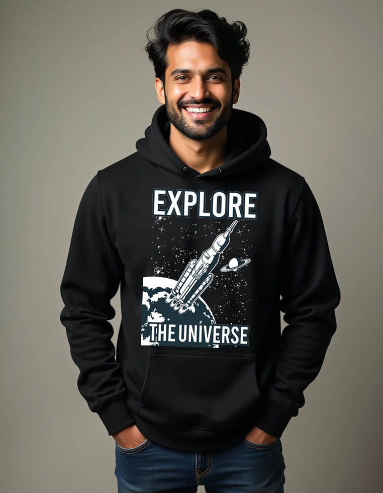explore the universe Casual Winter Streetwear Hoodie for Men – Premium Graphic