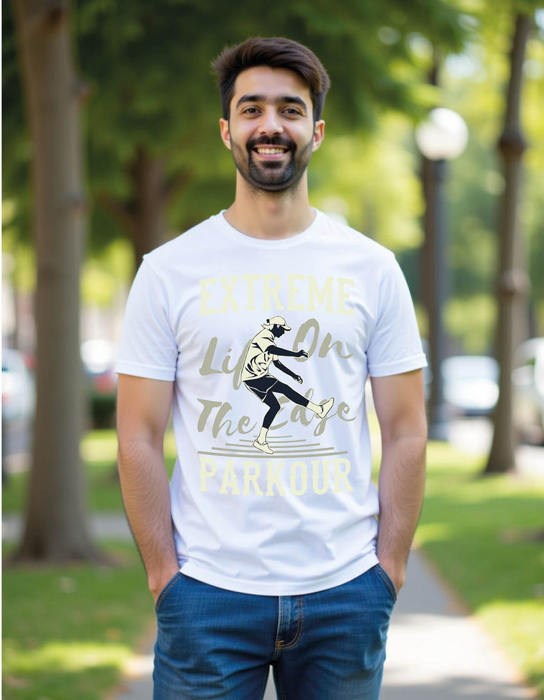 Extreme life on the edge parkour silhouette mens printed graphic t shit