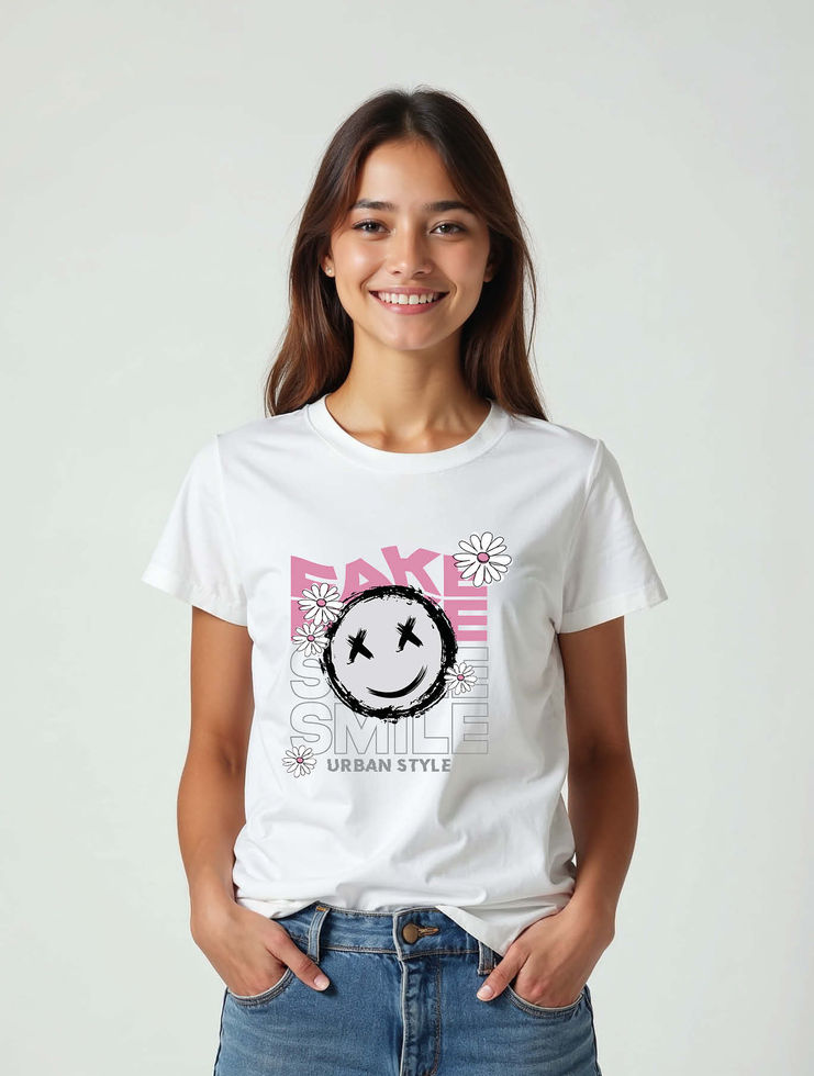 fake smile urban style Casual Women’s Printed Streetwear T-Shirt – Buy Now