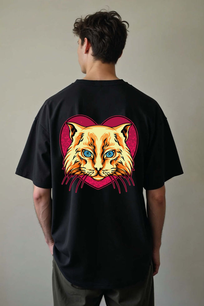 Fierce Cat Heart Casual Unisex Oversized Drop Shoulder Tees For Men & Women