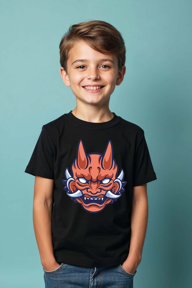 Fierce Japanese Hannya Mask T-Shirt Modern Cute Kids Typography T-Shirt