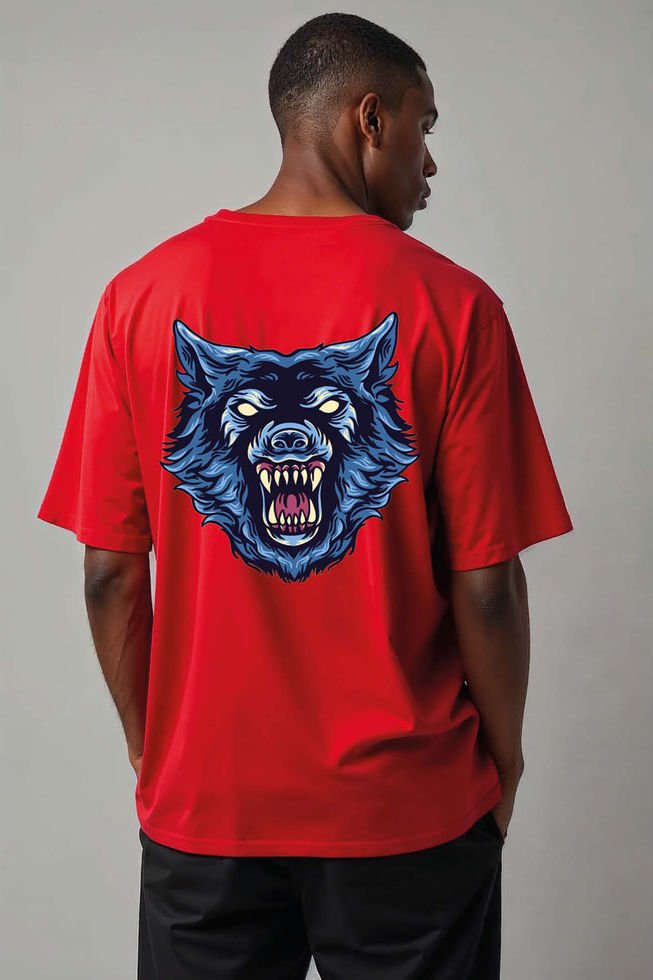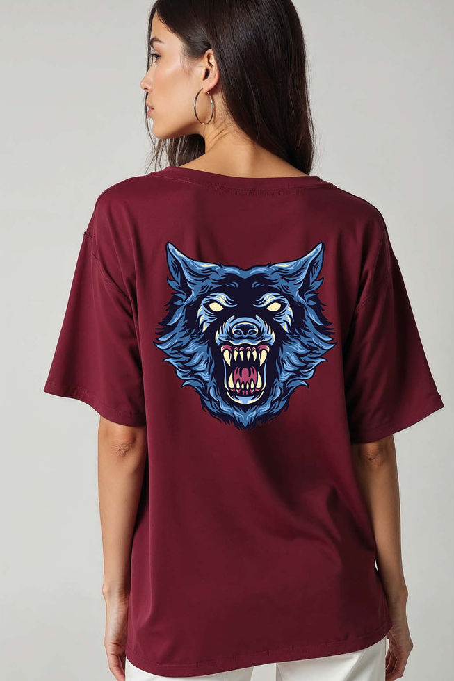Fierce Neon Blue Wolf Head Trendy Classic Unisex Oversized Drop Shoulder Tees