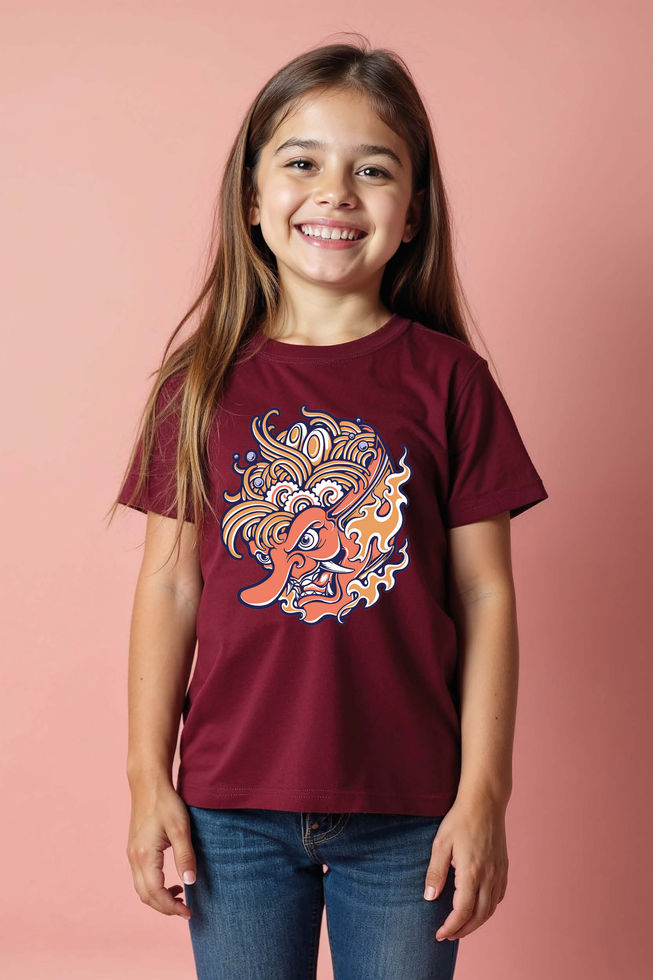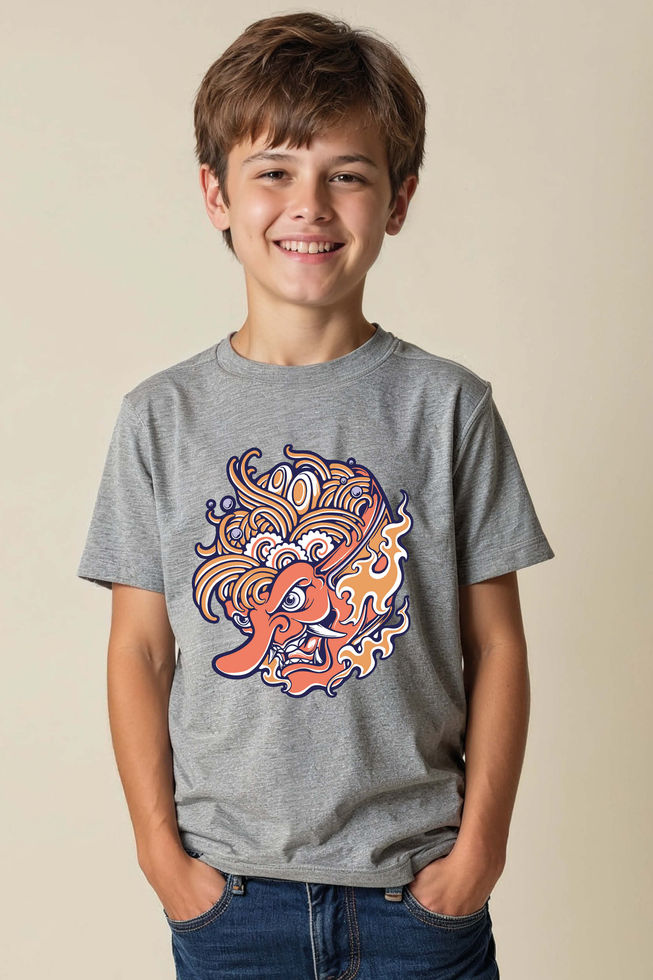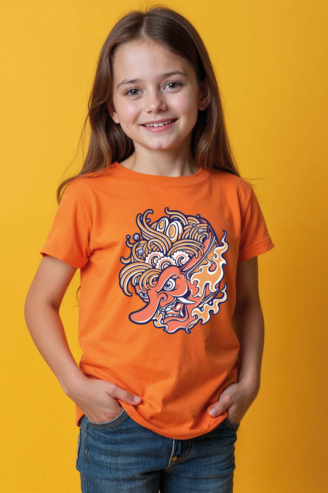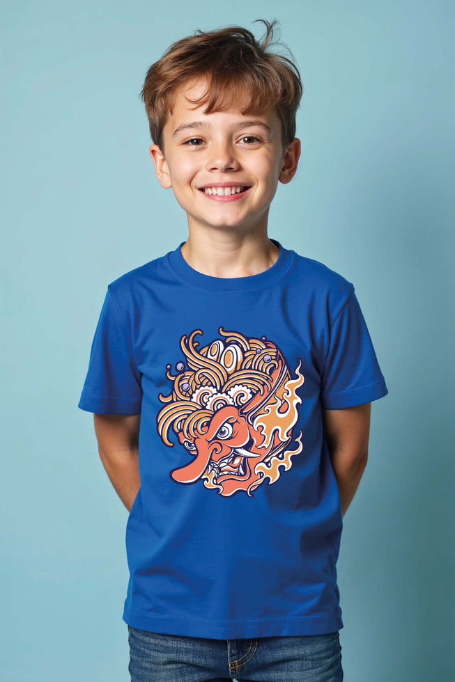 Fiery Japanese Tengu Mask Kids T-Shirt Cool Kids Fashion T-Shirt – Space Print