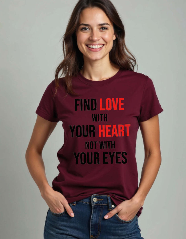 find love with your heart not with your eyes printed T-Shirt for All ages