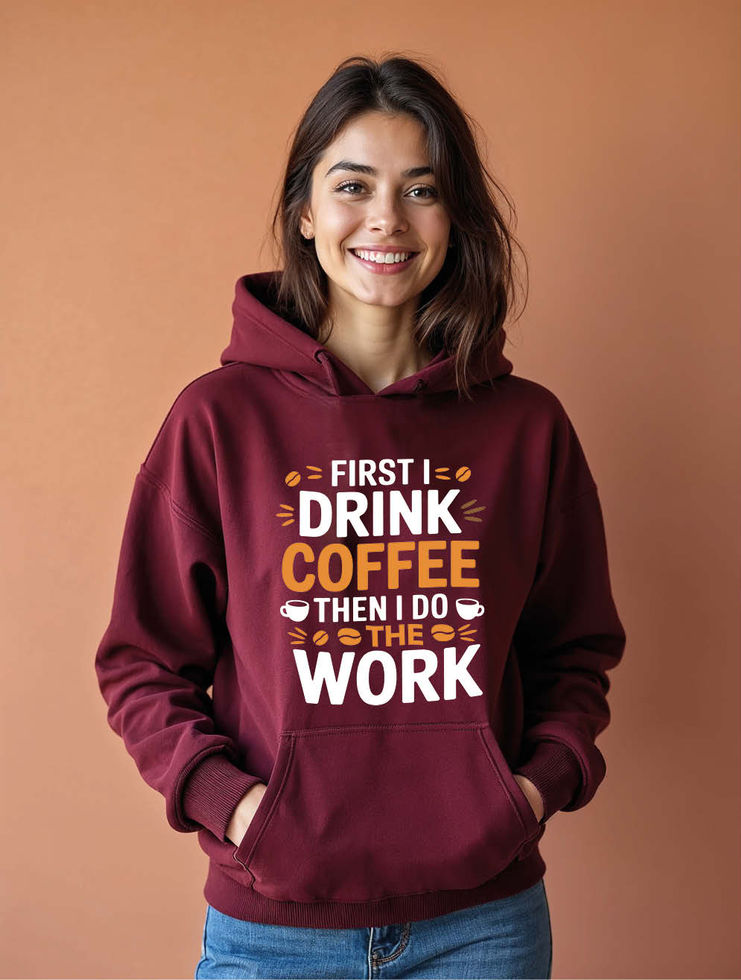 first drink coffee then i do the work Woman's Printed Graphic Stylish Hoodies