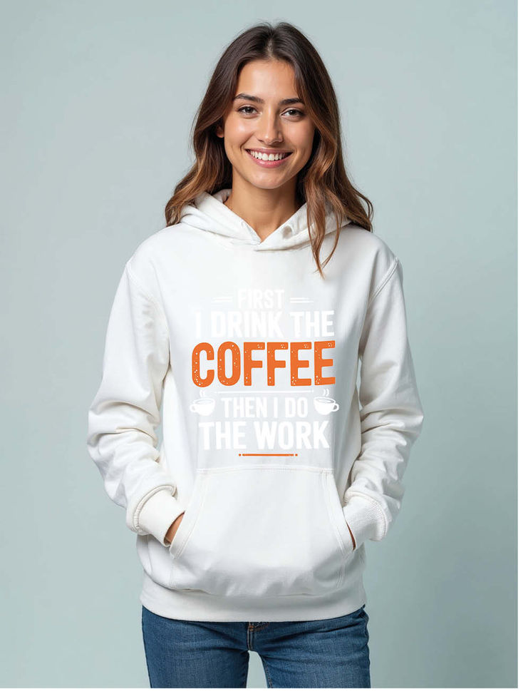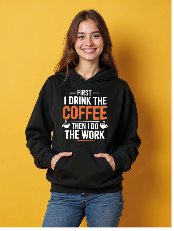 first i drink the coffee then i do the work Cool Women’s Typography Hoodies