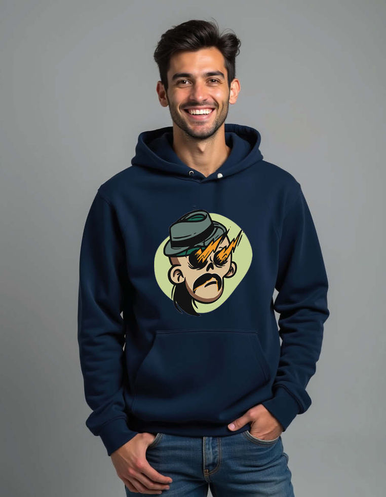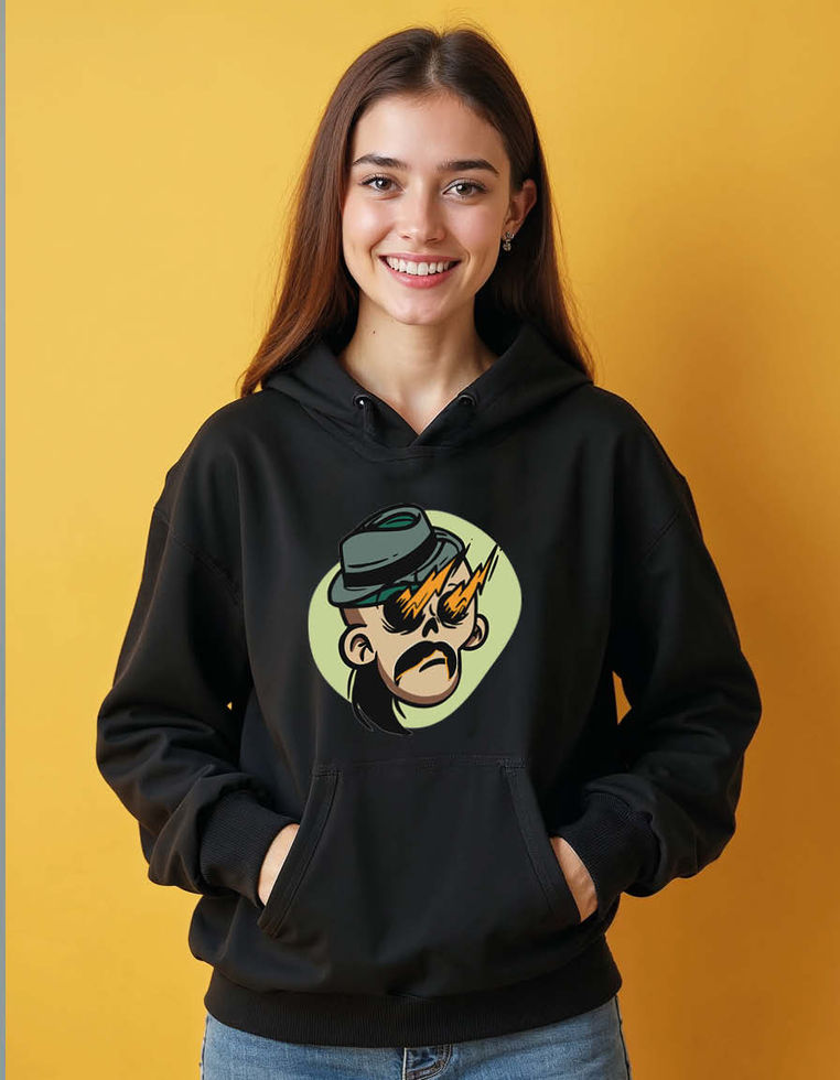 Flaming Eye Retro Gentleman Cartoon Unisex Printed Hoodie For Men & Women