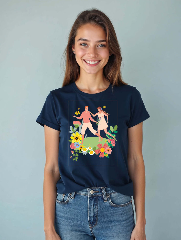 Floral Stroll Modern Women’s Graphic Typography T-Shirt – Buy Now