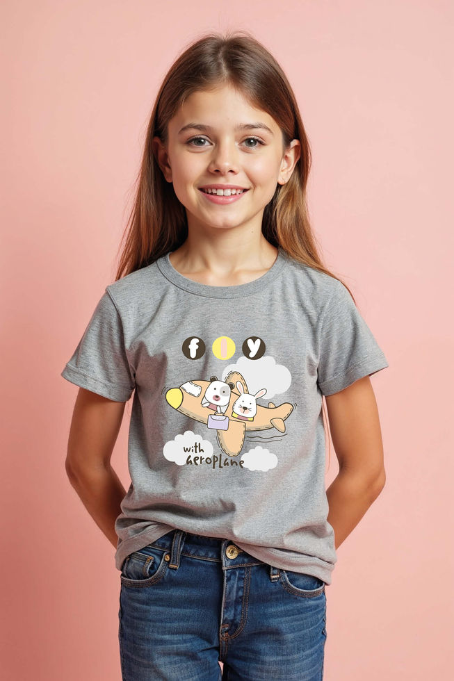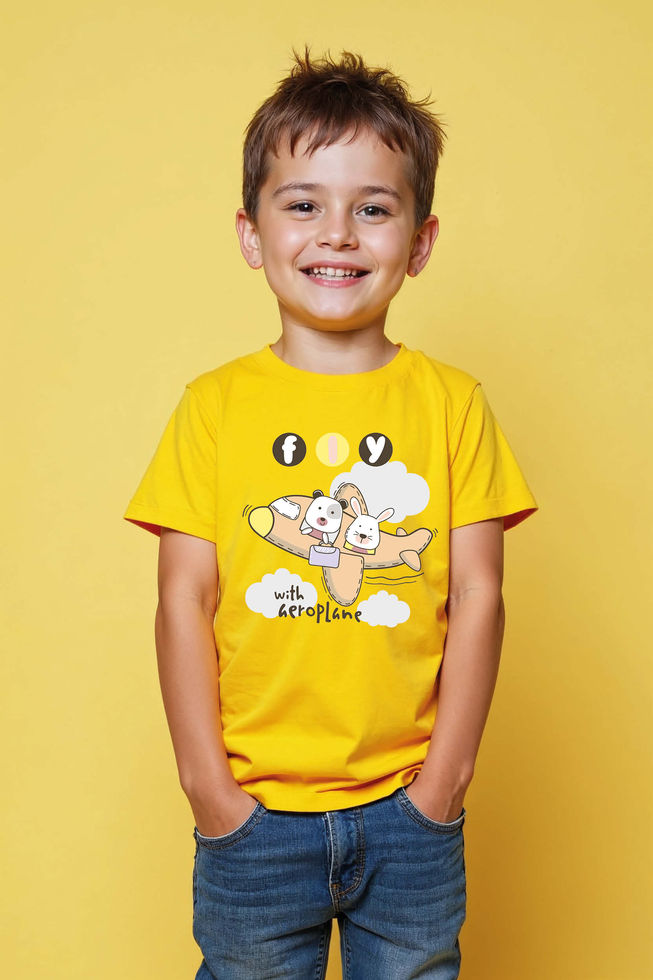 fly with geroplane Cotton Stylish Kids Graphic T-Shirt – Illustration Print Tees