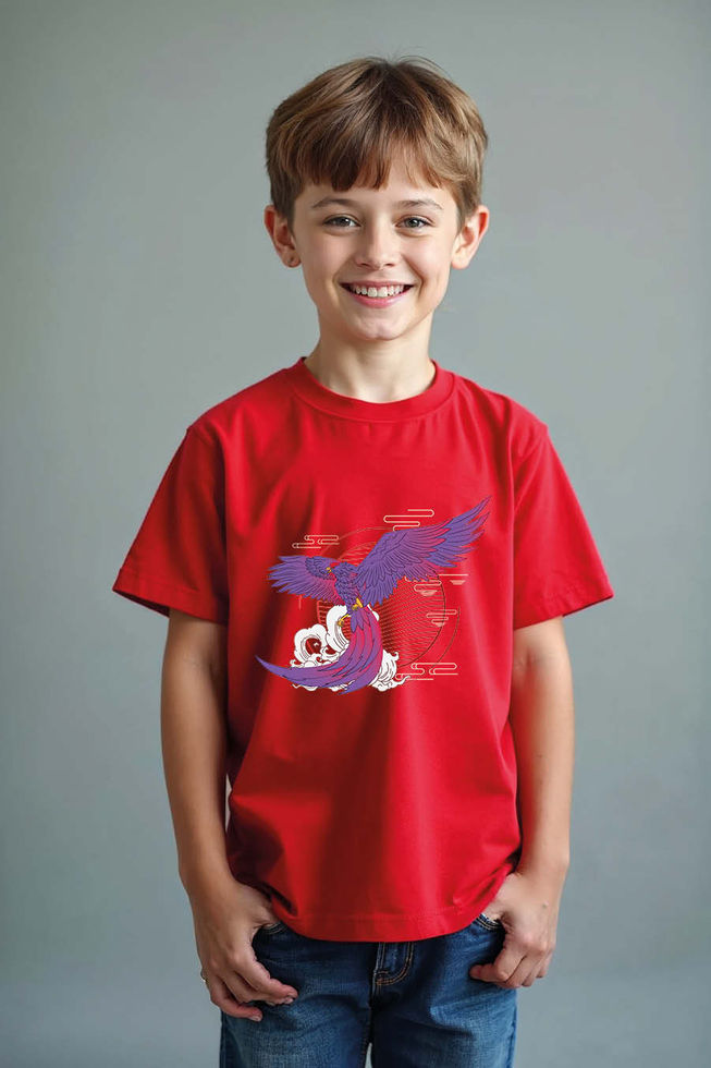 Flying Phoenix Printed T-Shirt for Kids – Majestic Purple and Red Mythical Bird
