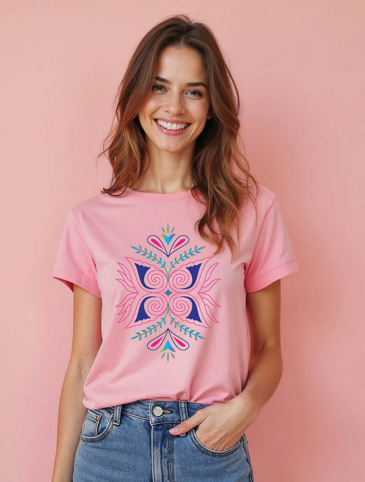 Folk SwirlChic Women’s Printed Graphic Streetwear T-Shirt – Limited Stock