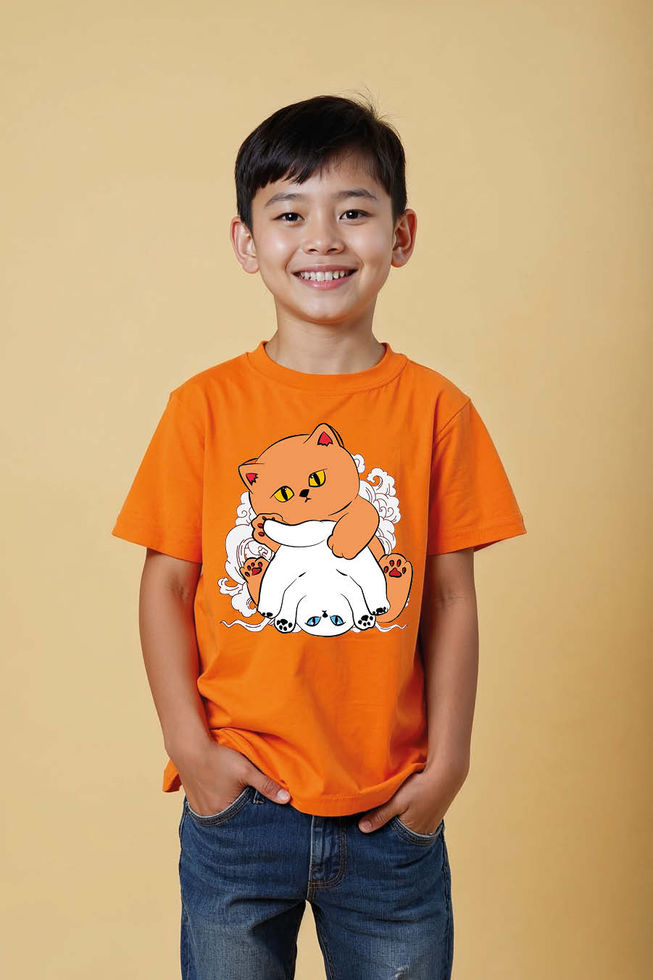 Funny Cat Duo Printed T-Shirt for Kids – Playful Orange and White Cats Graphic