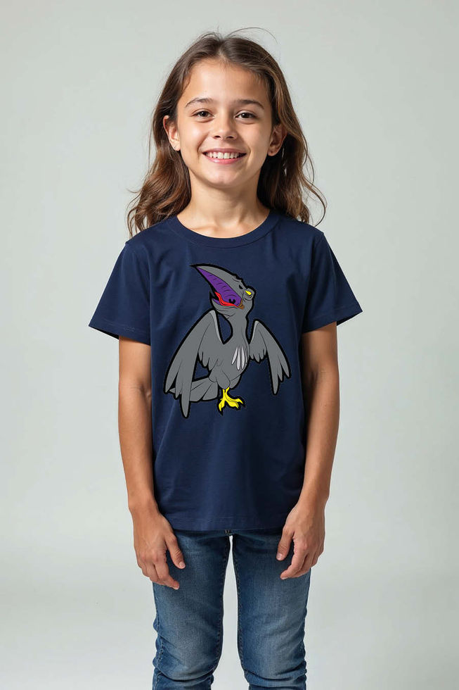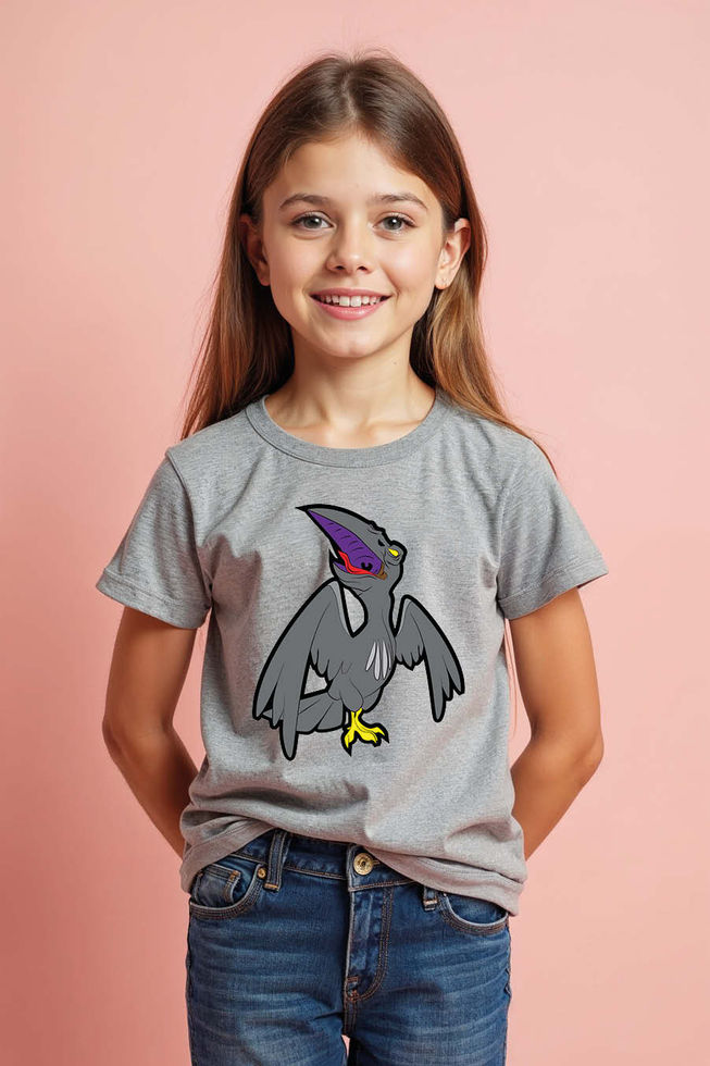 Funny Grey Bird Printed T-Shirt for Kids – Cool Cartoon Flying Bird Graphic Tee