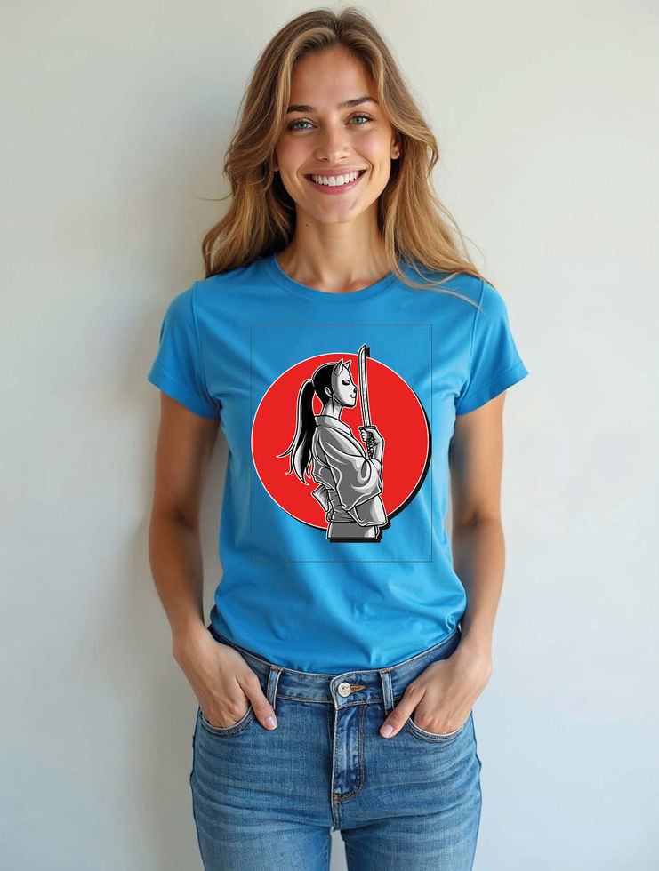 Geisha/Samurai Warrior with Katana Casual Women’s Typography T-Shirt – Shop Now