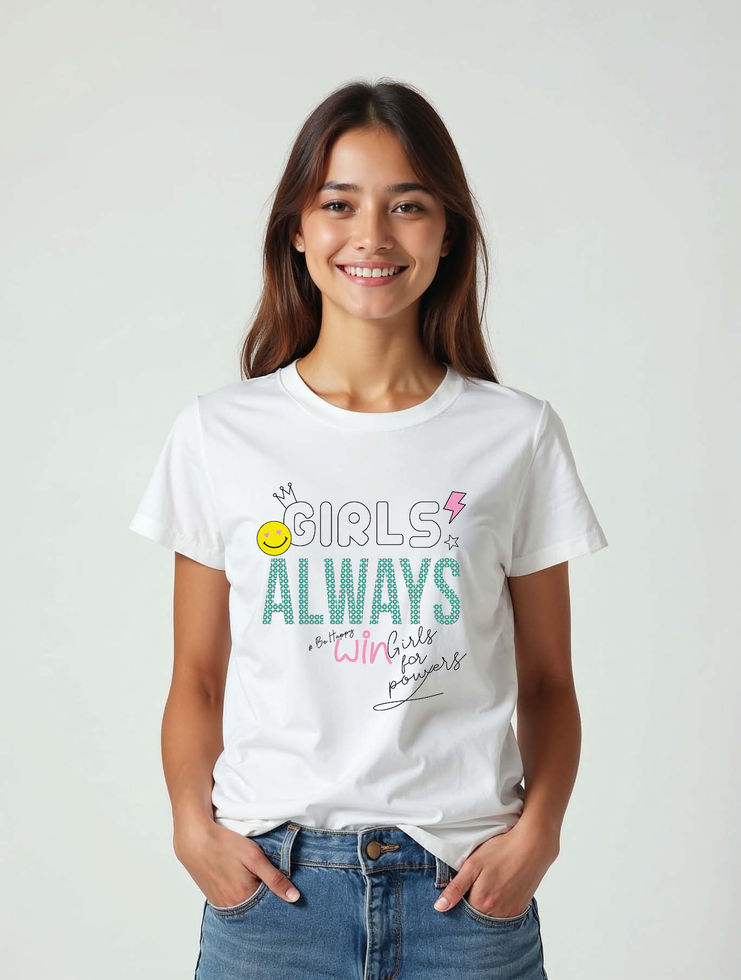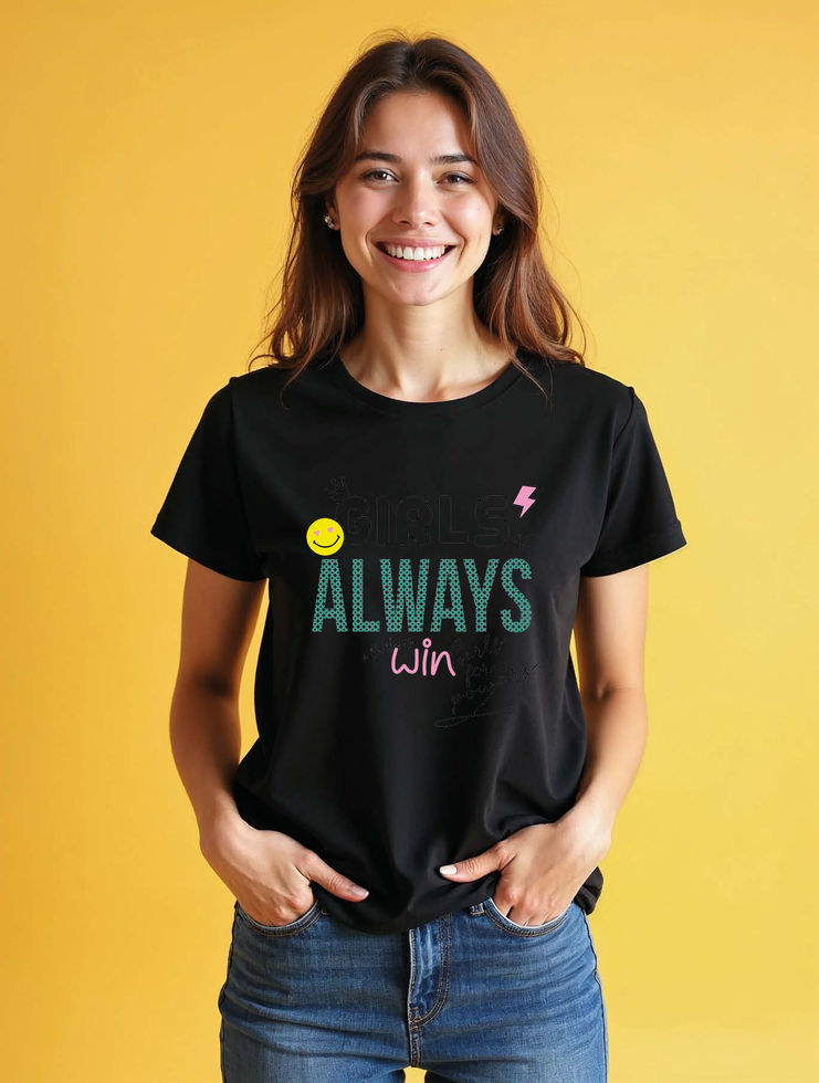Girls always win Trendy Women’s Graphic T-Shirt – Discount Offer